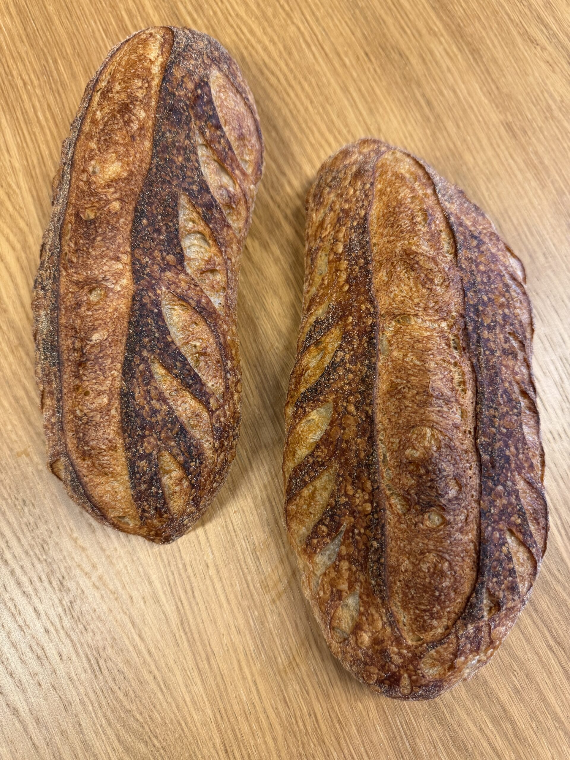 2 småbrød som tilsvarer størrelsen på et vanlig surdeigsbrød.